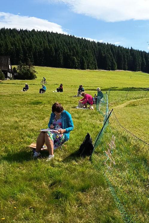 Užijeme si populární urban sketching - domečky ve Slavonicích k tomu přímo vybízejí - a vyrazíme i na několik výletů do nádherné okolní přírody České Kanady, kde se pověnujeme pro změnu malbě. (Tedy malbu můžeme zkusit i na domečcích, pokud budete mít zájem ;-).)